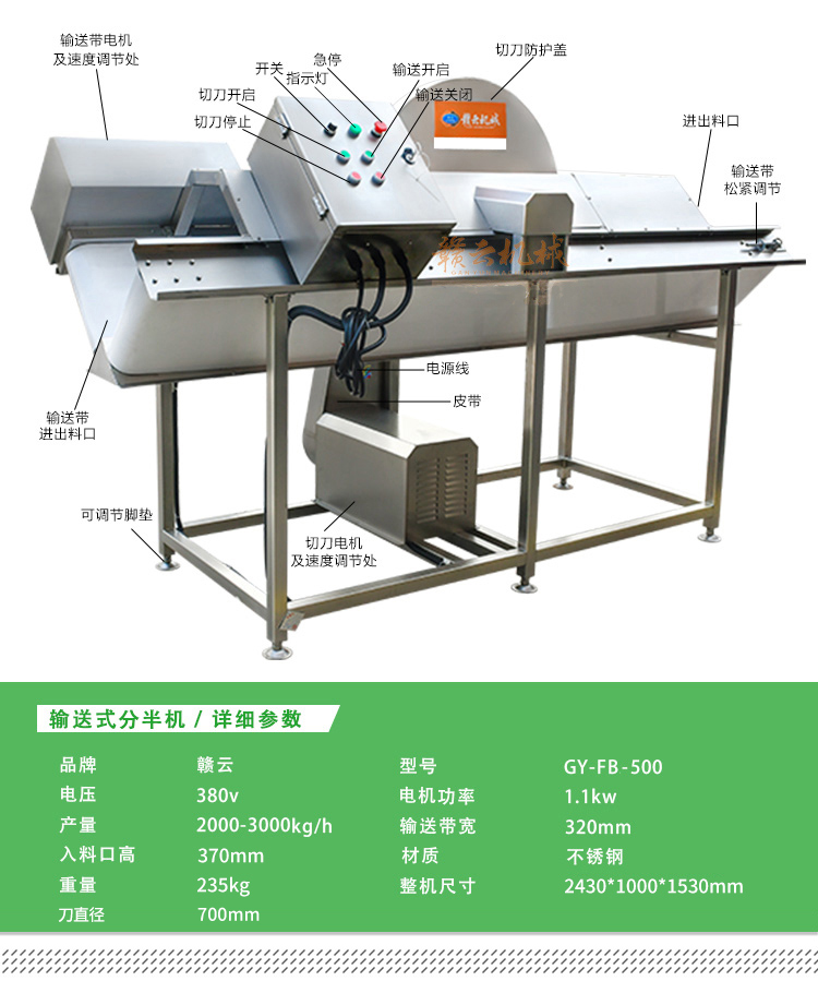 果蔬加工機(jī)械->凈菜加工設(shè)備->輸送式分半機(jī) | |||||||