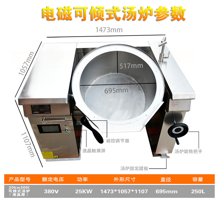 中央廚房設(shè)備->熱調(diào)理區(qū)設(shè)備->20KW200L可傾式湯爐(液晶屏) | |||||||