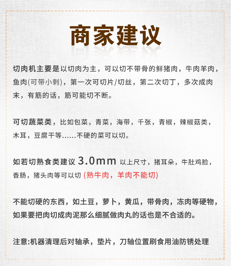 鮮肉開片分層機(jī)[視頻] 鮮肉一次切塊機(jī)[視頻] 550切肉丁機(jī)(帶[視頻] 單通道鮮肉切片機(jī)[視頻] 500平行開條機(jī)[視頻] 550型切肉丁機(jī)[視頻] 連續(xù)式切肉片肉絲機(jī)[視頻] 高速自動(dòng)切花機(jī)[視頻] 平行開條機(jī)(鋸齒刀[視頻] 鮮肉水平開片機(jī)[視頻] 350型切肉丁機(jī)[視頻] 平行開條機(jī)(平口刀[視頻] 輸送式鮮肉切片機(jī)[視頻] 120D切熟肉機(jī)[視頻] 雙路連續(xù)式分半機(jī)([視頻] 500型去筋膜機(jī)[視頻] 熟肉切片機(jī)(實(shí)用款[視頻] 鮮肉切片機(jī) 330平行開條機(jī)[視頻] 360型切肉絲機(jī)[視頻] 200D切肉條機(jī)[視頻] 切塊機(jī)[視頻] 切肉片機(jī)[視頻] 鮮肉切絲機(jī)[視頻] 豬皮去油機(jī)[視頻] 切肉條機(jī)(380V[視頻] 鮮肉切片機(jī)[視頻] 2160型切絲機(jī)([視頻] 435型商用豬肉自[視頻] 切肉絲含絞肉一體機(jī) 180型切肉機(jī)(不[視頻] 2200型切肉絲機(jī)[視頻] 全自動(dòng)羊肉切片機(jī)[視頻] 工程款切肉機(jī)[視頻] 1100型切肉絲機(jī)[視頻] 盆式脫卸絞切機(jī) 85型肉片肉絲機(jī)([視頻] 190不銹鋼切肉機(jī) 精裝立式切肉機(jī)[視頻] 豪華立式切肉機(jī)