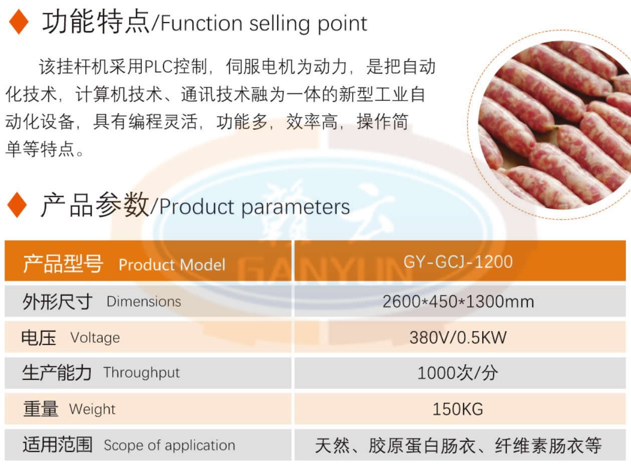 肉制品前處理->專用灌腸設(shè)備->1200自動(dòng)香腸掛桿機(jī) | |||||||