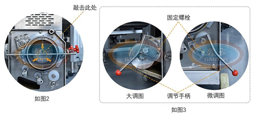 12、機(jī)器采肉不干凈,說(shuō)明采肉帶比較松需調(diào)節(jié)采肉帶緊度。調(diào)節(jié)把手并固定如圖3。